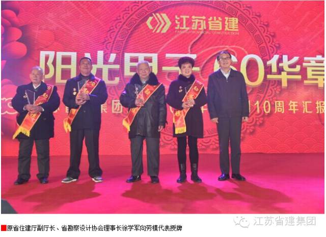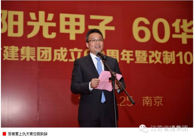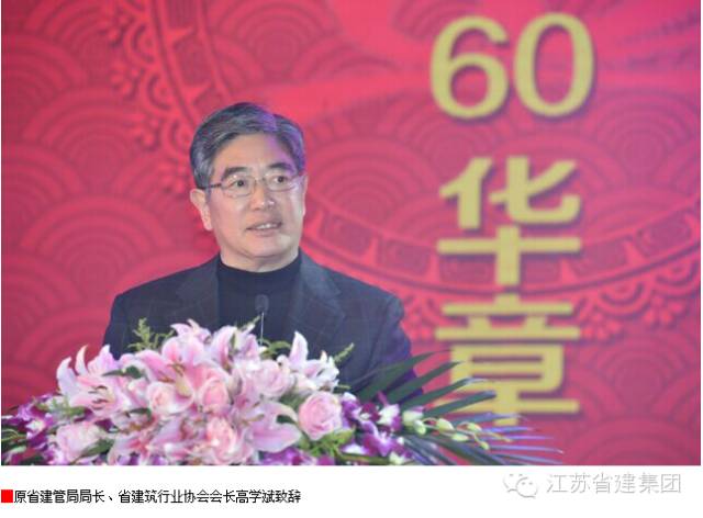 原省建管局局长、省建筑行业协会会长高学斌对江苏省建集团60年来取得的成绩给予充分肯定。他在致辞中说,60年来,在几代省建人艰苦卓越的奋斗下,江苏省建实现了跨越式发展,为社会培育了一大批人才,先后打造了洛阳第一拖拉机厂、南京长江大桥桥头堡、海南寰岛泰得大酒店、上海锦江汤臣洲际大酒店、上海建国宾馆、淮安周恩来纪念馆等一大批体现省建实力、提升城市品质的经典之作。2006年省建实施产权制度改革以来,立足于企业的可持续发展,集团上下积极推进企业的转型发展,业务范围不断扩大,规模效益显著提升,核心竞争力明显增强,呈现出健康快速发展的良好态势,成为我省建筑行业的龙头企业、领军企业和改制标杆企业。衷心地希望省建集团在新的征程中,继续发挥自身优势,深化改革创新,增强发展后劲,再接再厉,再创辉煌,以更好的精神面貌、更大的发展成就回报社会。